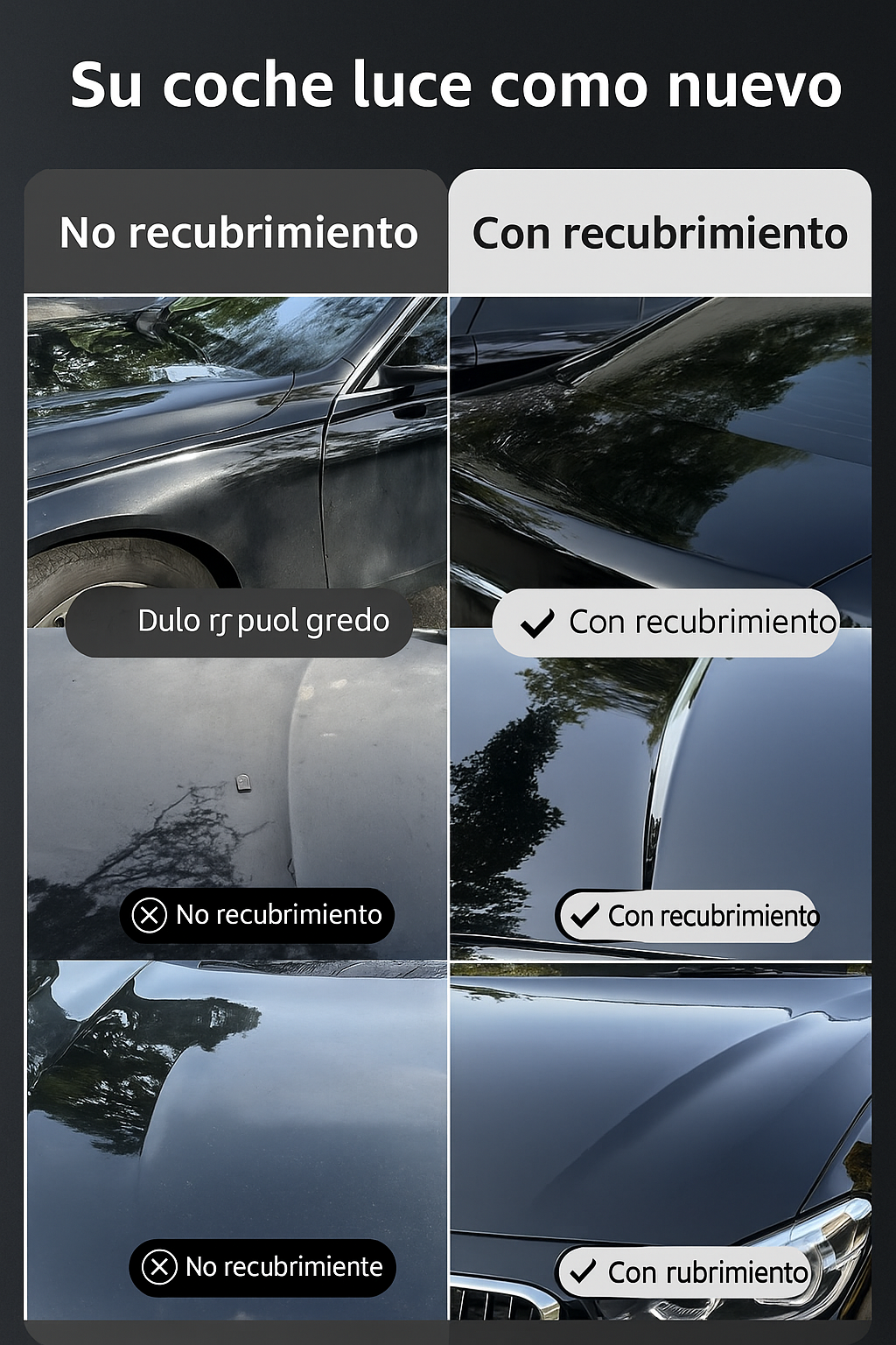 Descubre una solución avanzada para el cuidado de tu vehículo con nuestro Spray Protector de Pintura para Coche. Diseñado con tecnología de recubrimiento de efecto espejo, este producto no solo realza el brillo natural de tu coche, sino que también lo protege de los factores más agresivos del entorno: sol, lluvia, suciedad, arañazos y oxidación.