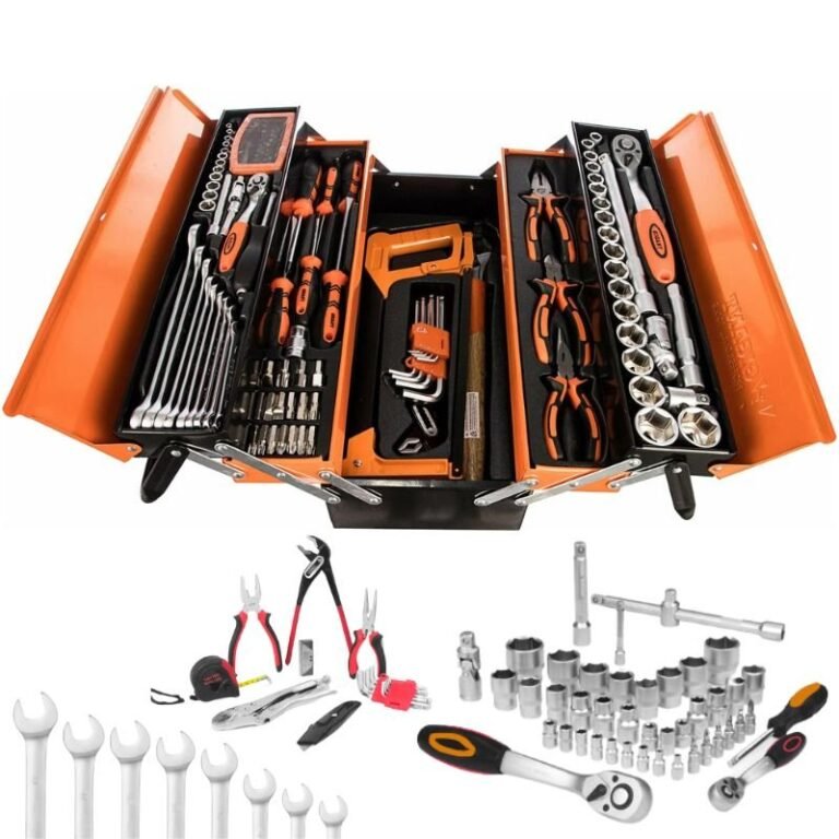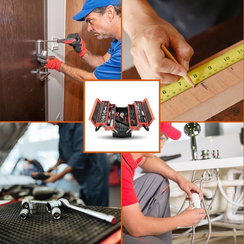 ALTA CALIDAD: Las herramientas están fabricadas en cromo vanadio, un material profesional y la caja es de metal y con acabado de pintura, ambos son materiales duraderos y resistentes a la corrosión.