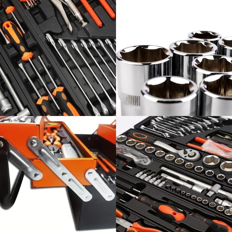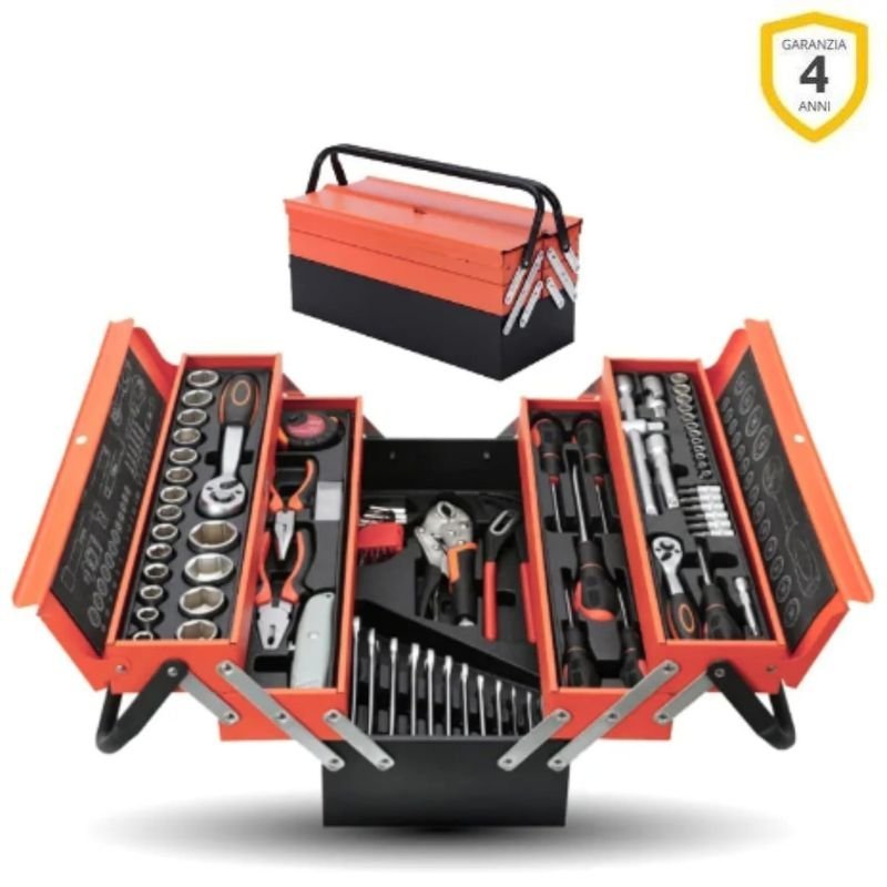 (30% DE DESCUENTO) Caja de herramientas de chapa con 5 compartimentos y 2 asas. (108 herramientas para uso profesional)