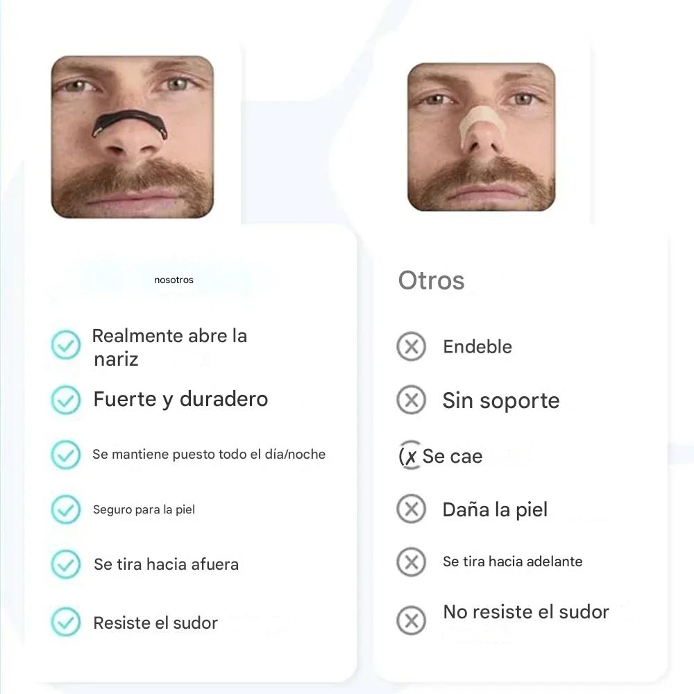 Al abrir las vías nasales, ayuda a reducir los ronquidos y mejora la calidad del sueño. Tú y quienes te rodean disfrutarán de noches más tranquilas.