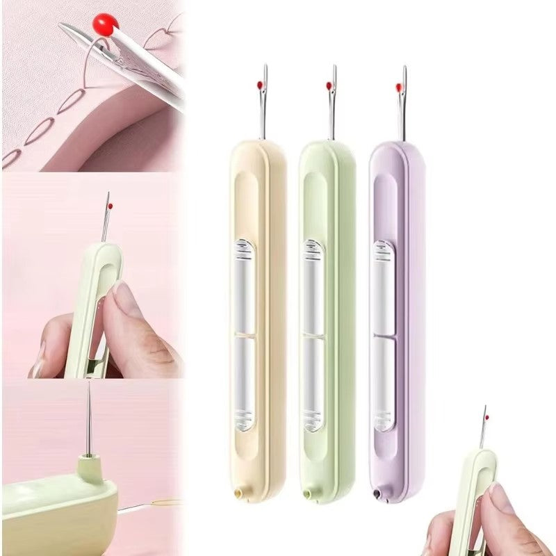 Este práctico accesorio combina descosedor y enhebrador en un solo dispositivo. Perfecto para quitar costuras o enhebrar sin fatiga visual, haciendo tu trabajo más rápido y fluido.
