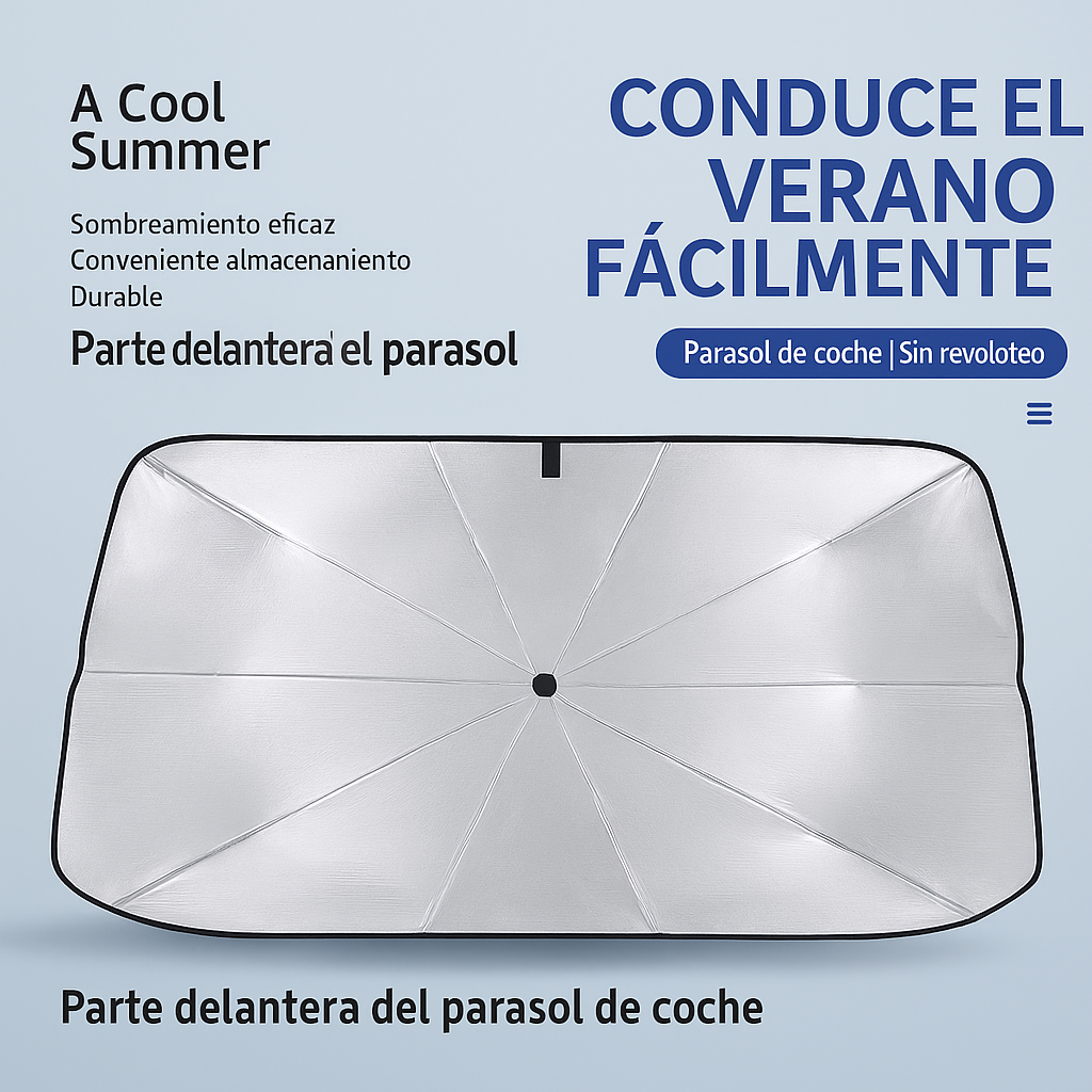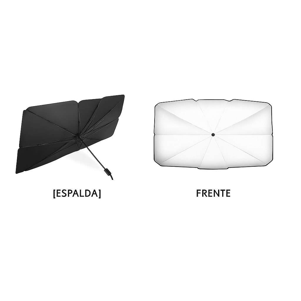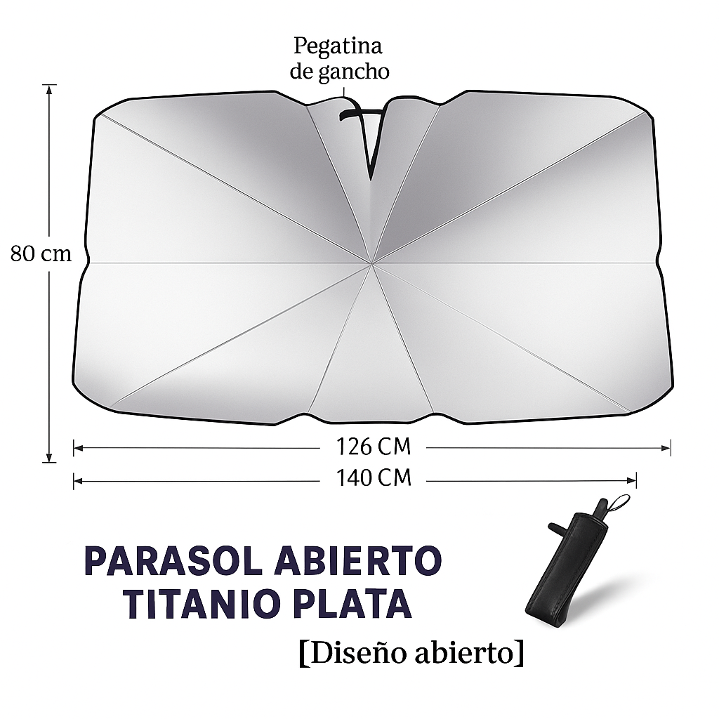 Disfruta de un interior fresco y protegido con nuestro parasol tipo paraguas de 140x80 cm, ideal para la mayoría de coches medianos y grandes como Volkswagen Golf, Renault Clio, Dacia Sandero, SUV y monovolúmenes. Con su diseño reflectante y estructura resistente, protege tu salpicadero, volante y asientos del sol abrasador.