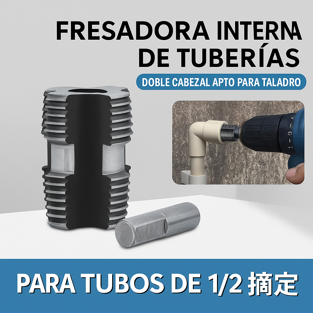 Título del Producto: Roscadora Interna de Tuberías Doble Cabezal para Taladro - Machuelo 1/2" y 3/4"