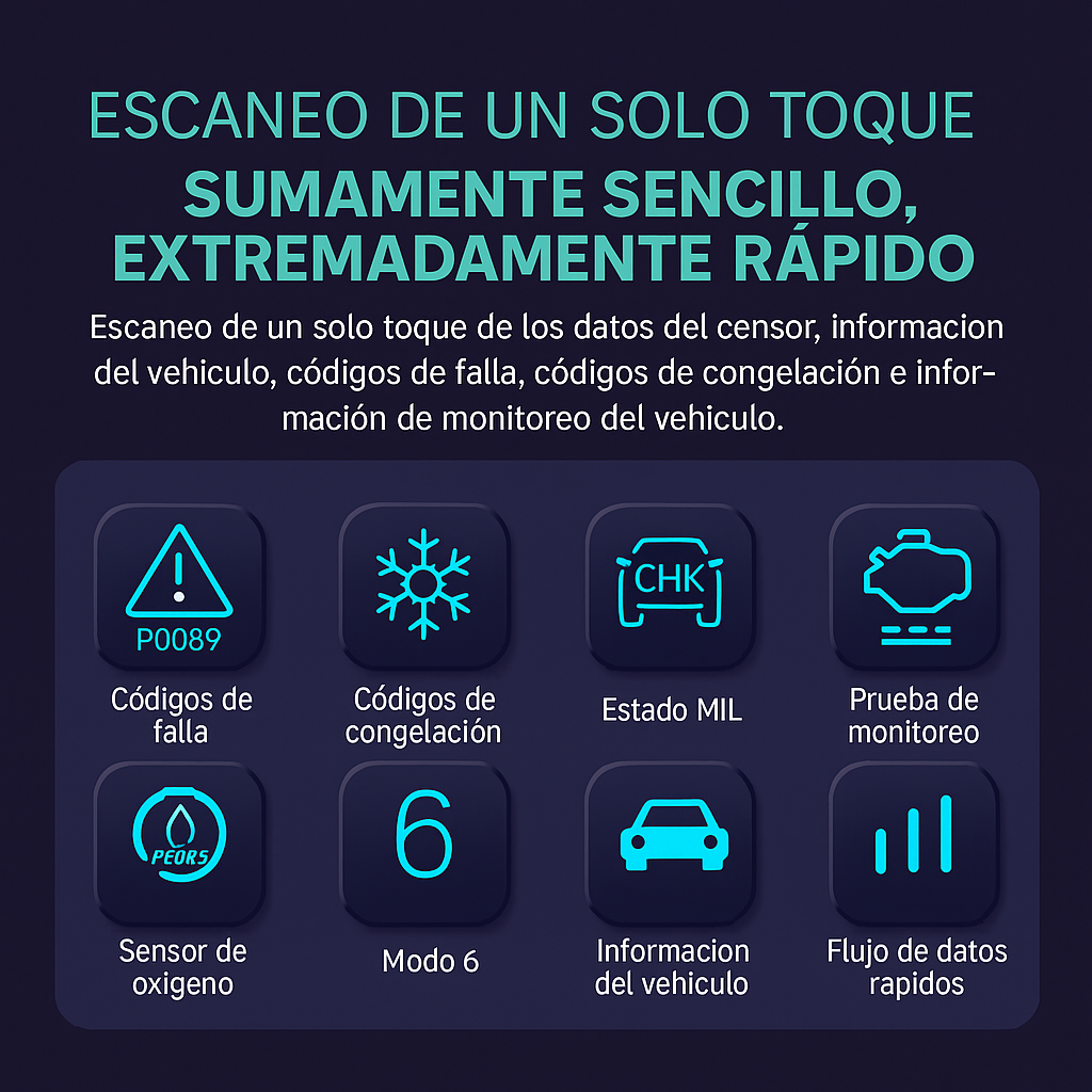 Escaneo de todos los sistemas: motor, transmisión, ABS, airbags, suspensión, frenos y más.